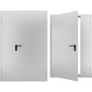 В-третьих, это усиленная конструкция. Полотна изготавливаются с гнутыми профилями. Это предотвращает его деформацию при воздействии огня. С обеих сторон дверного полотна используются металлические пластины толщиной 1,5 мм. Дверное полотно и дверная коробка снабжены специальными уплотнителями, защищающими от холодного и горячего воздуха. Полотно и внутренняя часть коробки наполнены минеральной ватой . Как правило, двери оснащены огнеупорным замком и несъемным элементом.