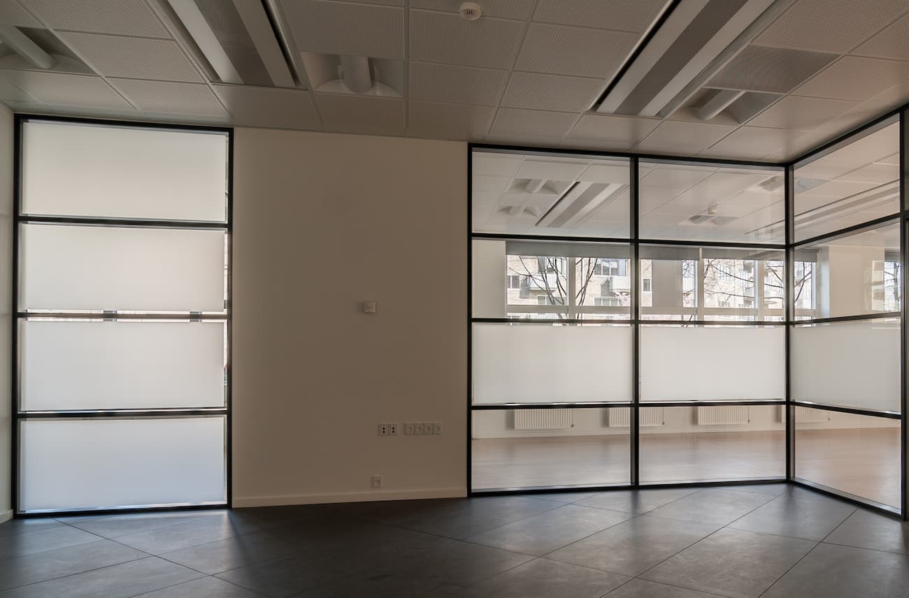 Противопожарные перегородки для магазина могут изготавливаться как в полностью остекленном варианте, так и в частично остекленном исполнении. Основное предназначение таких конструкций — это разделение общего помещения на несколько отдельных рабочих зон. При этом преследуется несколько целей: