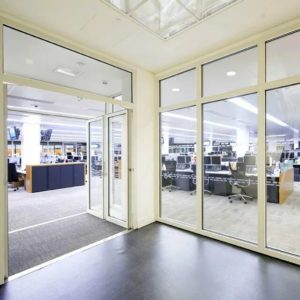 Противопожарные перегородки EIW-30 могут изготавливаться как в полностью остекленном варианте, так и в частично остекленном исполнении. Основное предназначение таких конструкций — это разделение общего помещения на несколько отдельных рабочих зон. При этом преследуется несколько целей: