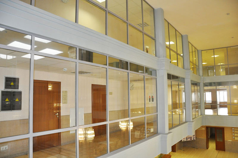 Прозрачные противопожарные перегородки могут изготавливаться как в полностью остекленном варианте, так и в частично остекленном исполнении. Основное предназначение таких конструкций — это разделение общего помещения на несколько отдельных рабочих зон. При этом преследуется несколько целей: