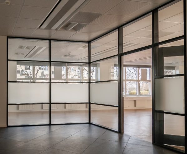 Светопрозрачные противопожарные перегородки могут изготавливаться как в полностью остекленном варианте, так и в частично остекленном исполнении. Основное предназначение таких конструкций — это разделение общего помещения на несколько отдельных рабочих зон. При этом преследуется несколько целей: